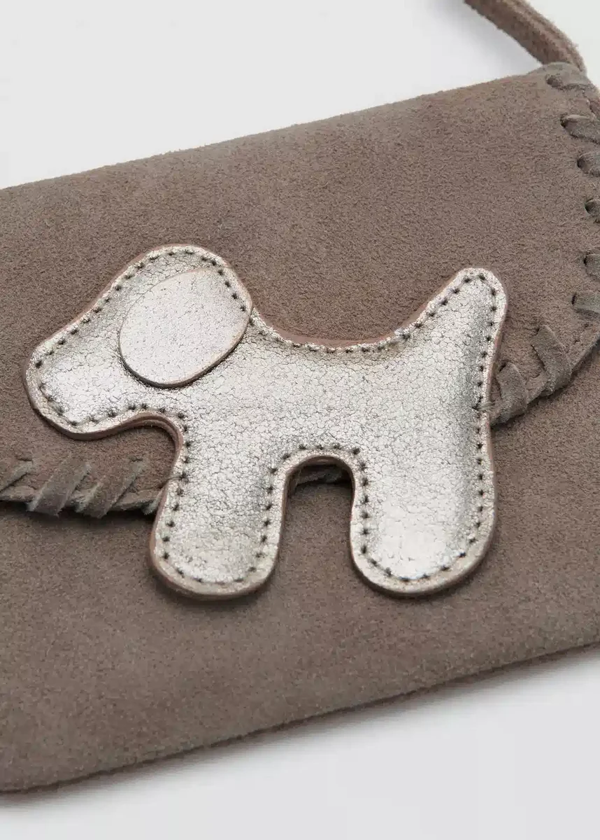 100 % hovězí kůže. Semiš. Design štěněte. Dlouhá rukojeť. Zapínání na knoflík. Černý pátek