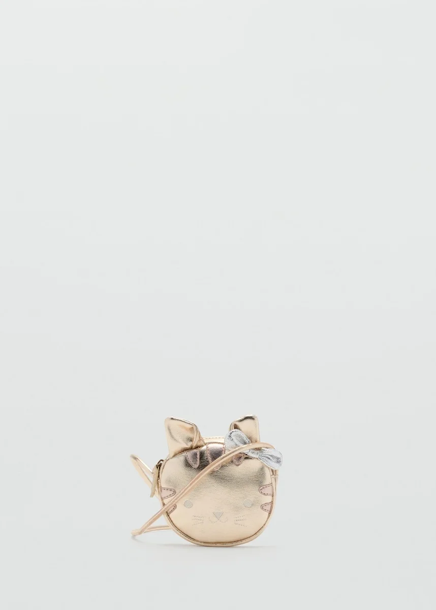 Kovová tkanina. Design s koťátky. Ozdobná mašle. Dlouhá rukojeť. Zapínání na zip.