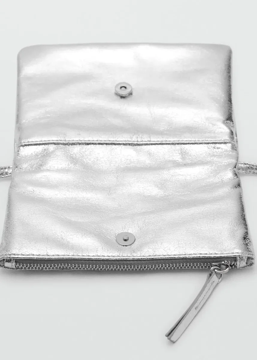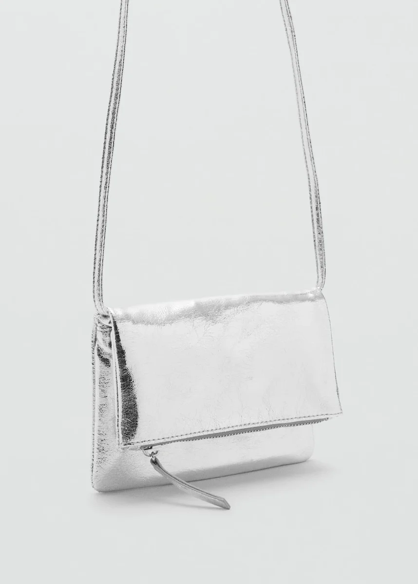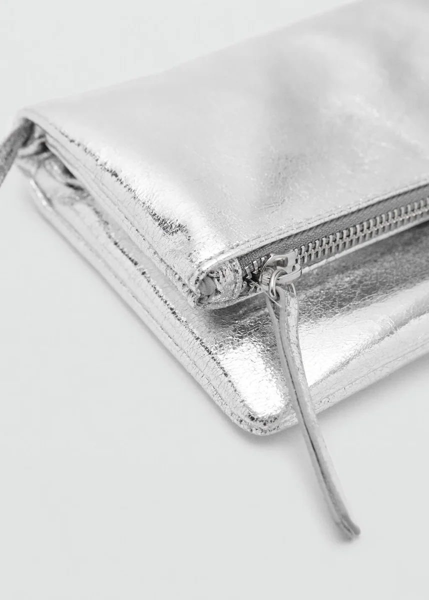 Metalická tkanina. Jednoduchý design. Zapínání na zip. Dlouhá rukojeť.