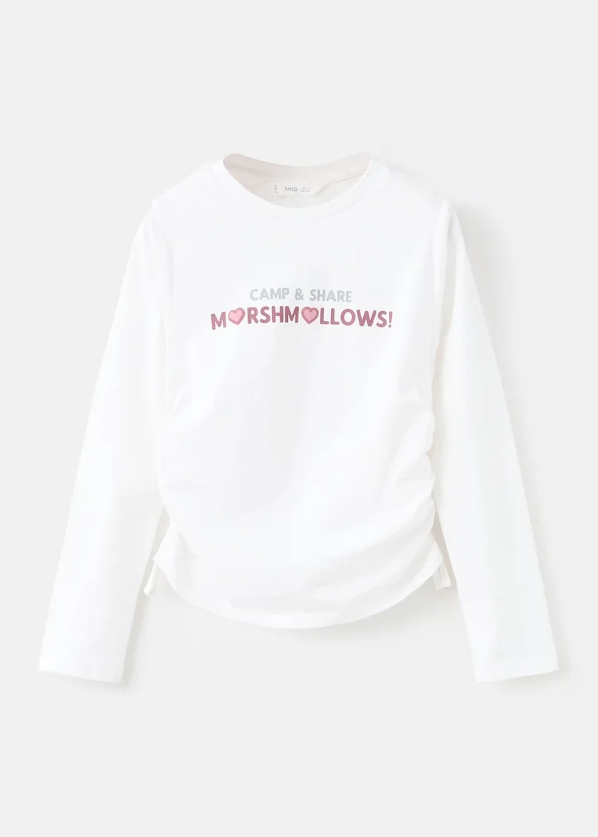 100% bavlna. Rovný střih. Potisk. Potisk na přední straně. Potisk na zadní straně. Kulatý výstřih. Dlouhé rukávy. Nařasené detaily po stranách.
