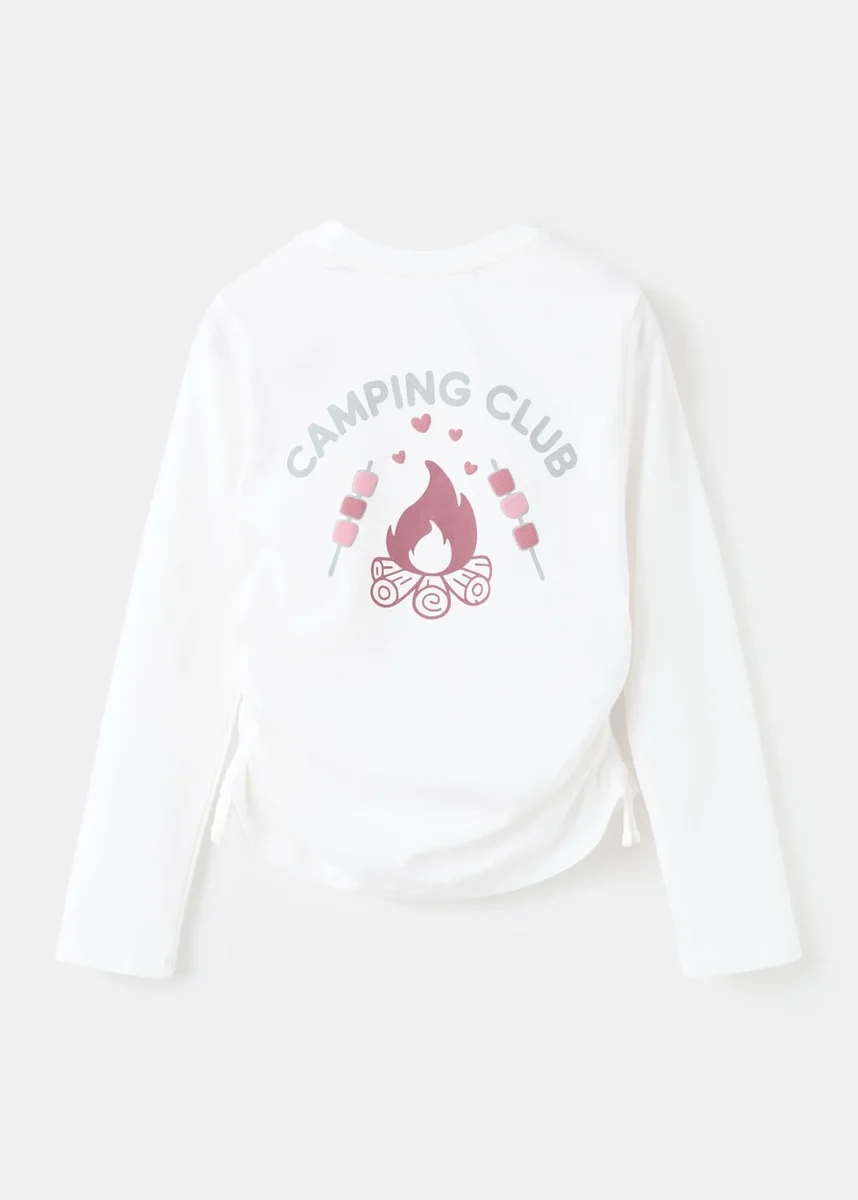 100% bavlna. Rovný střih. Potisk. Potisk na přední straně. Potisk na zadní straně. Kulatý výstřih. Dlouhé rukávy. Nařasené detaily po stranách
