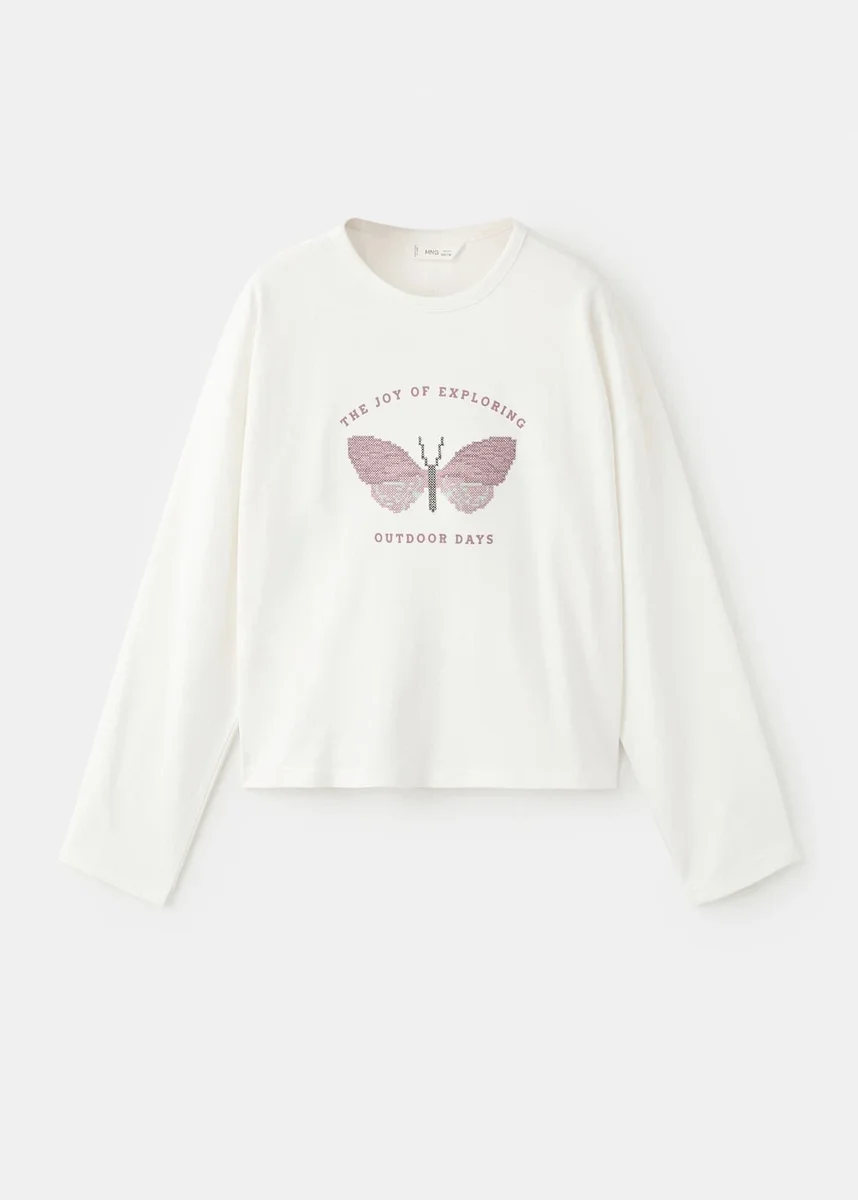 100% bavlna. Rovný střih. Potisk. Potisk na přední straně. Motýlí potisk. Kulatý výstřih. Dlouhé rukávy. Black Friday.