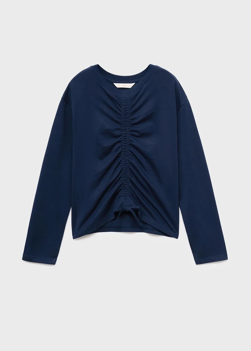 100% bavlna. Rovný střih. Nařasené detaily vpředu. Kulatý výstřih. Dlouhé rukávy. Black Friday.