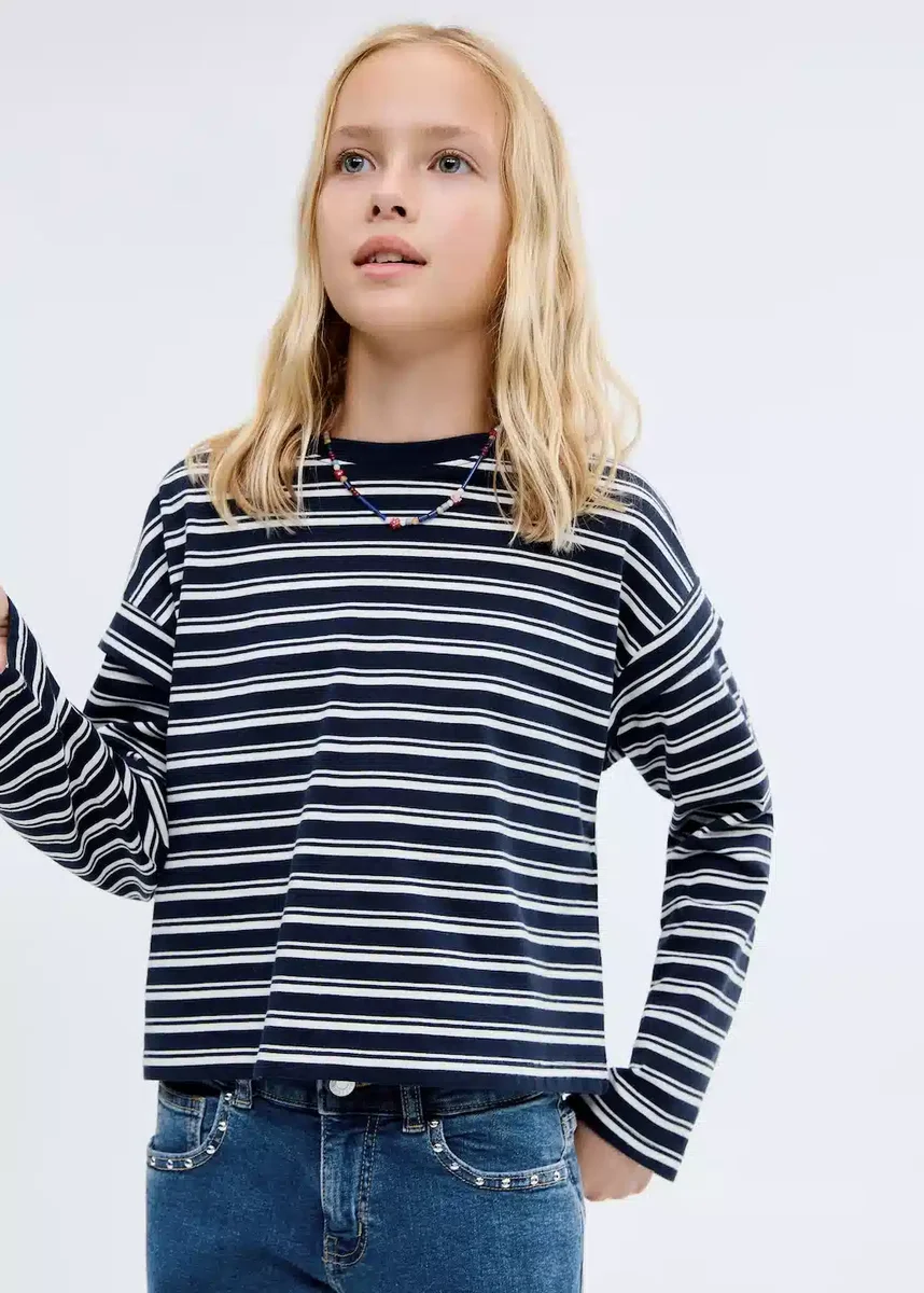 100% bavlna. Pruhovaný design. Kulatý výstřih. Dlouhé rukávy