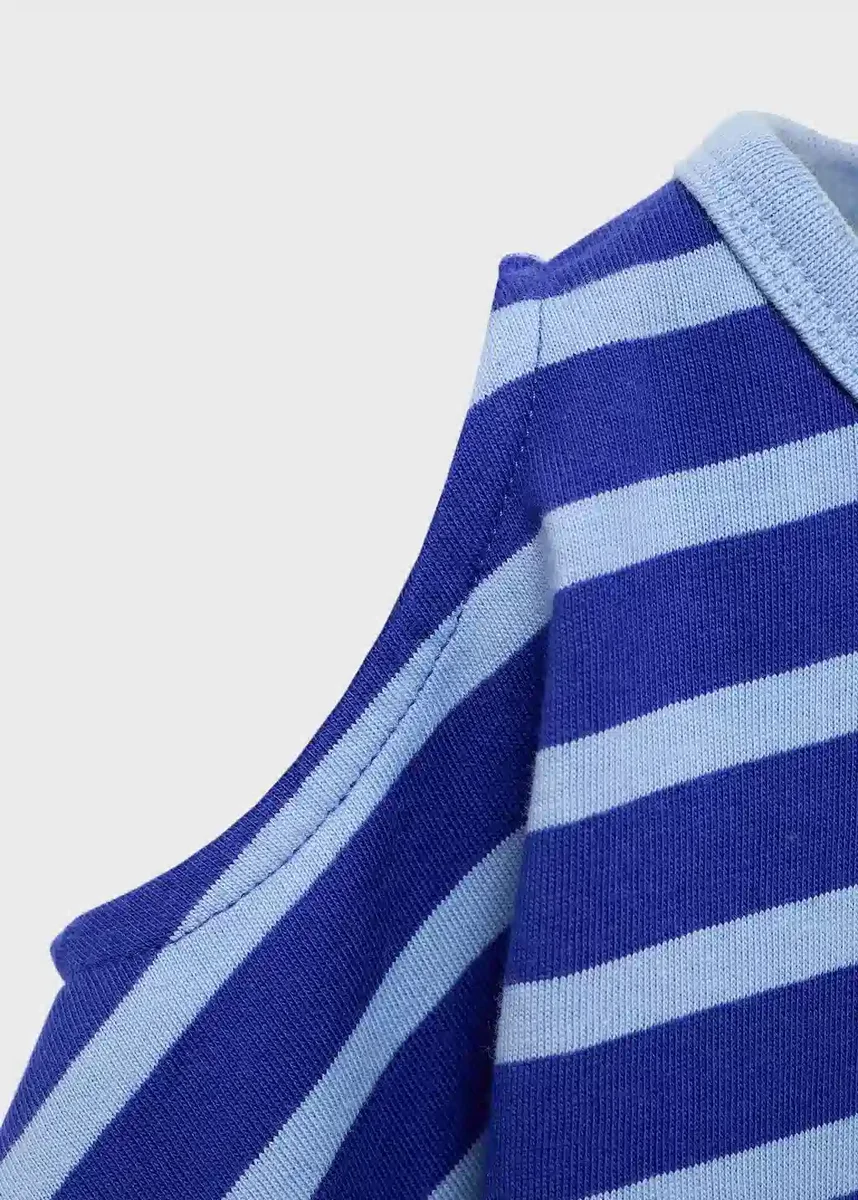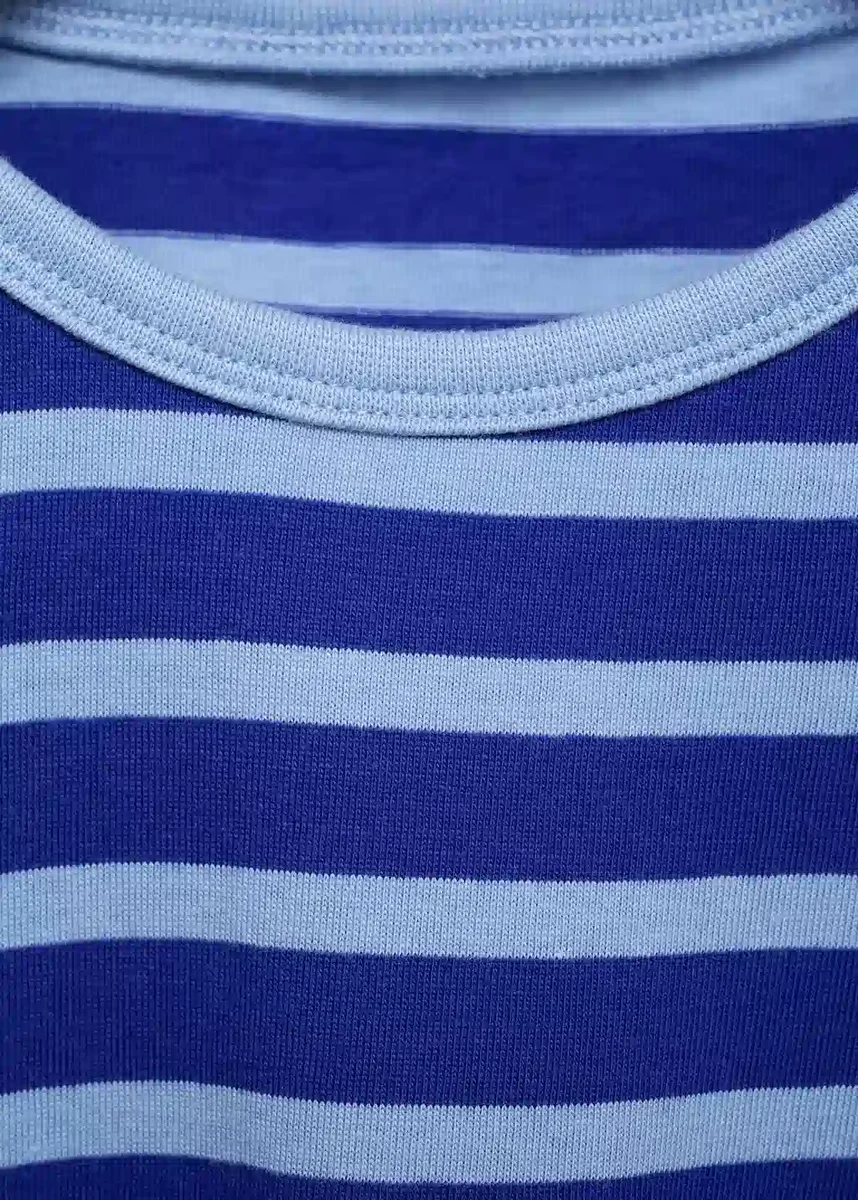 100% bavlna. Pruhovaná látka. Rovný střih. Výřez. Kulatý výstřih. Dlouhé rukávy.