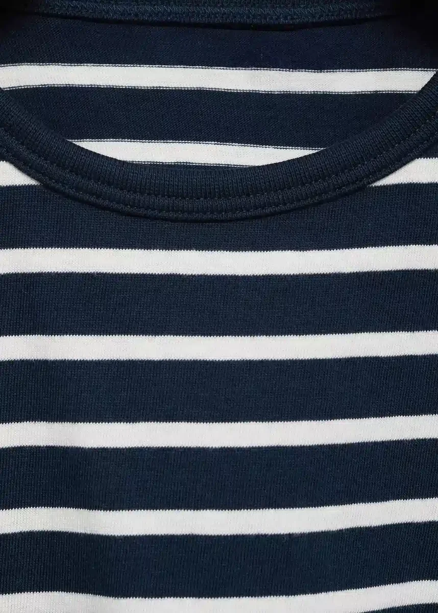 100% bavlna. Pruhovaný materiál. Rovný střih. Výřez. Kulatý výstřih. Dlouhé rukávy.