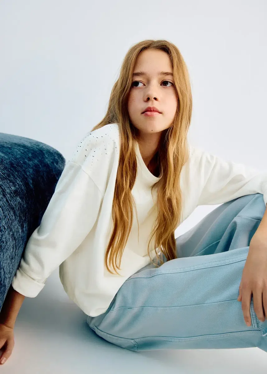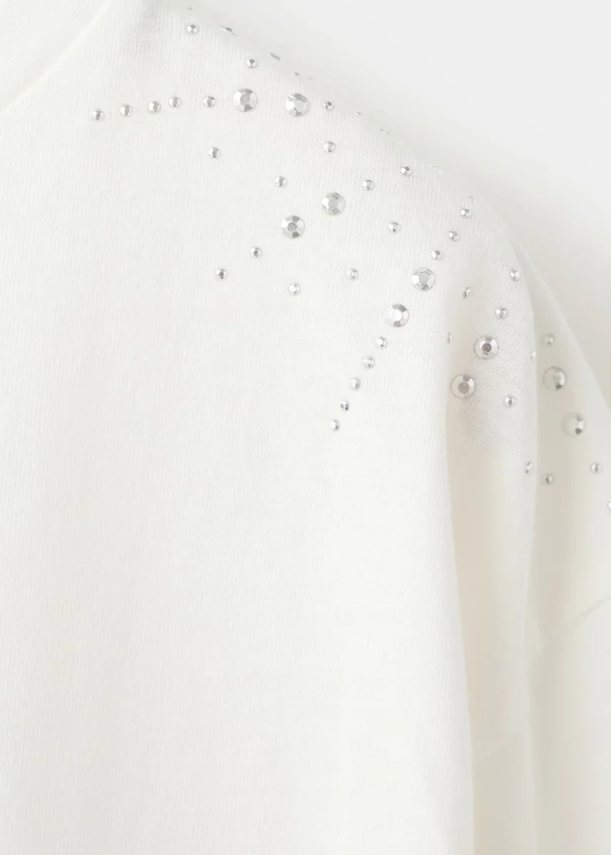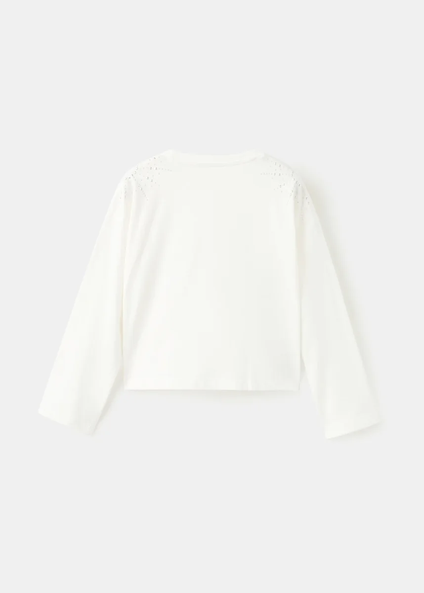 100 % bavlna. Jasný design. Ozdoba z kamínků. Kulatý výstřih. Dlouhé rukávy
