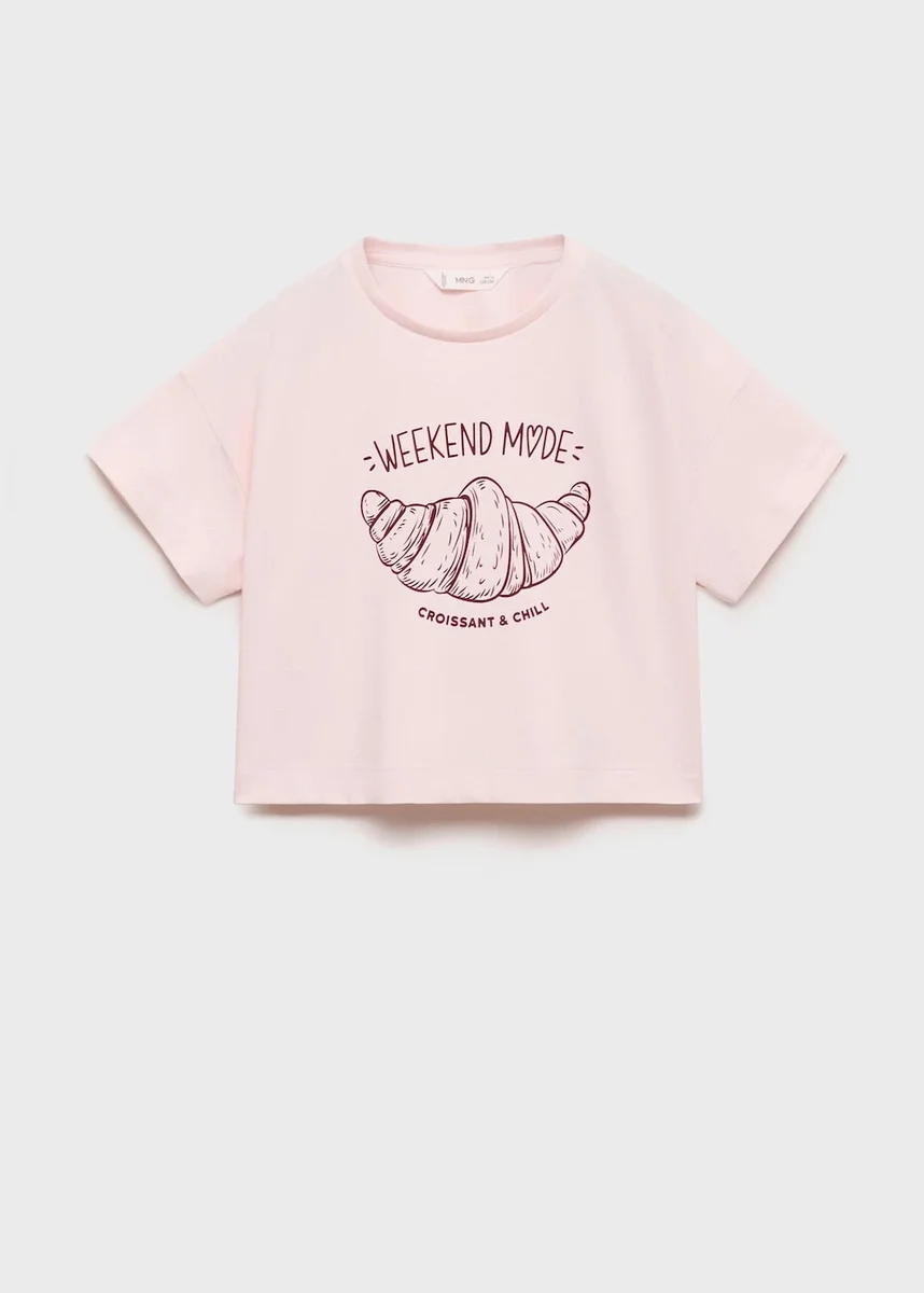 Bavlněná tkanina. Potisk. Krátký střih. Kulatý výstřih. Krátké rukávy. Potisk na hrudi.