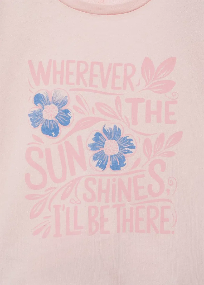 100% bavlna. Krátký střih. Rovný střih. Květinový potisk. Kulatý výstřih. Krátké raglánové rukávy. Potisk na přední straně. Uzlík na spodním lemu trička. Black Friday.
