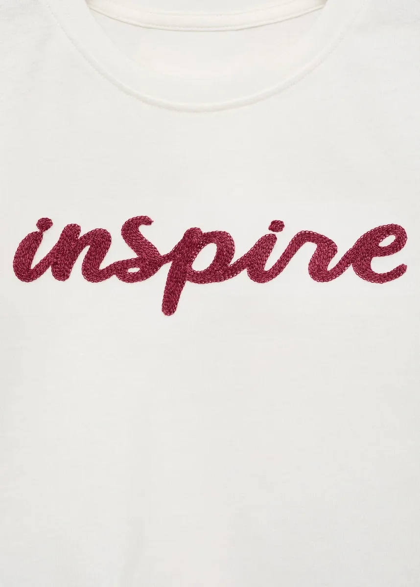 100% bavlna. Rovný střih. Vyšívaný vzor. Vyšívaný text. Kulatý výstřih. Krátké rukávy.