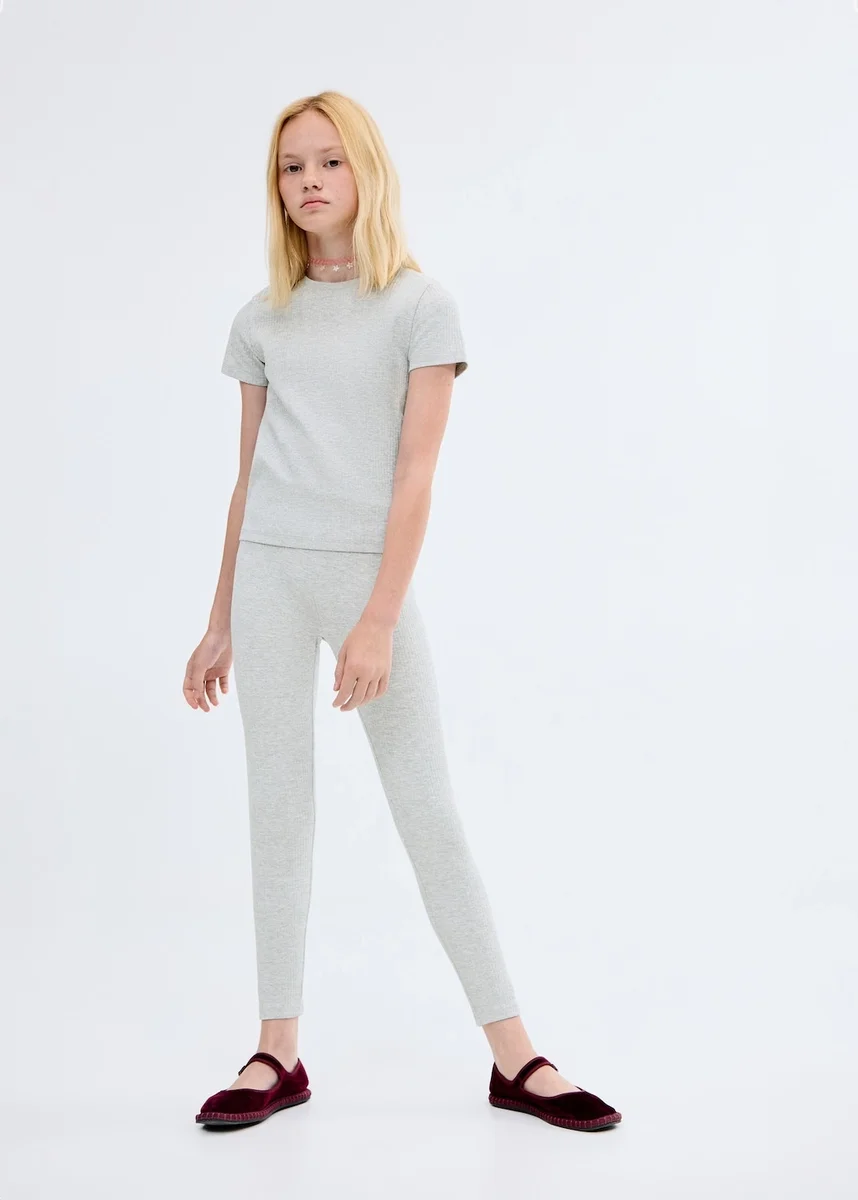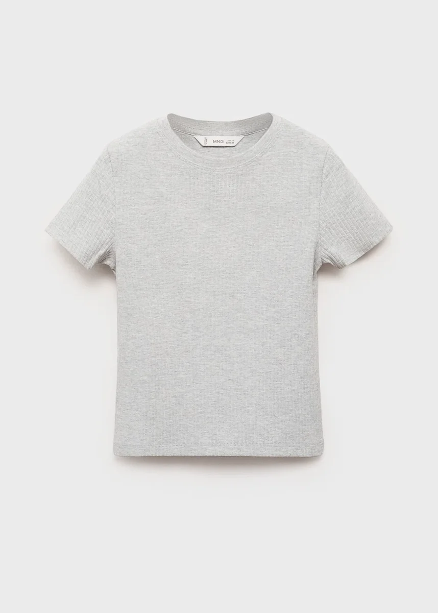 Bavlněná tkanina. Pružná tkanina. Žebrovaný design. Rovný střih. Kulatý výstřih. Krátké rukávy