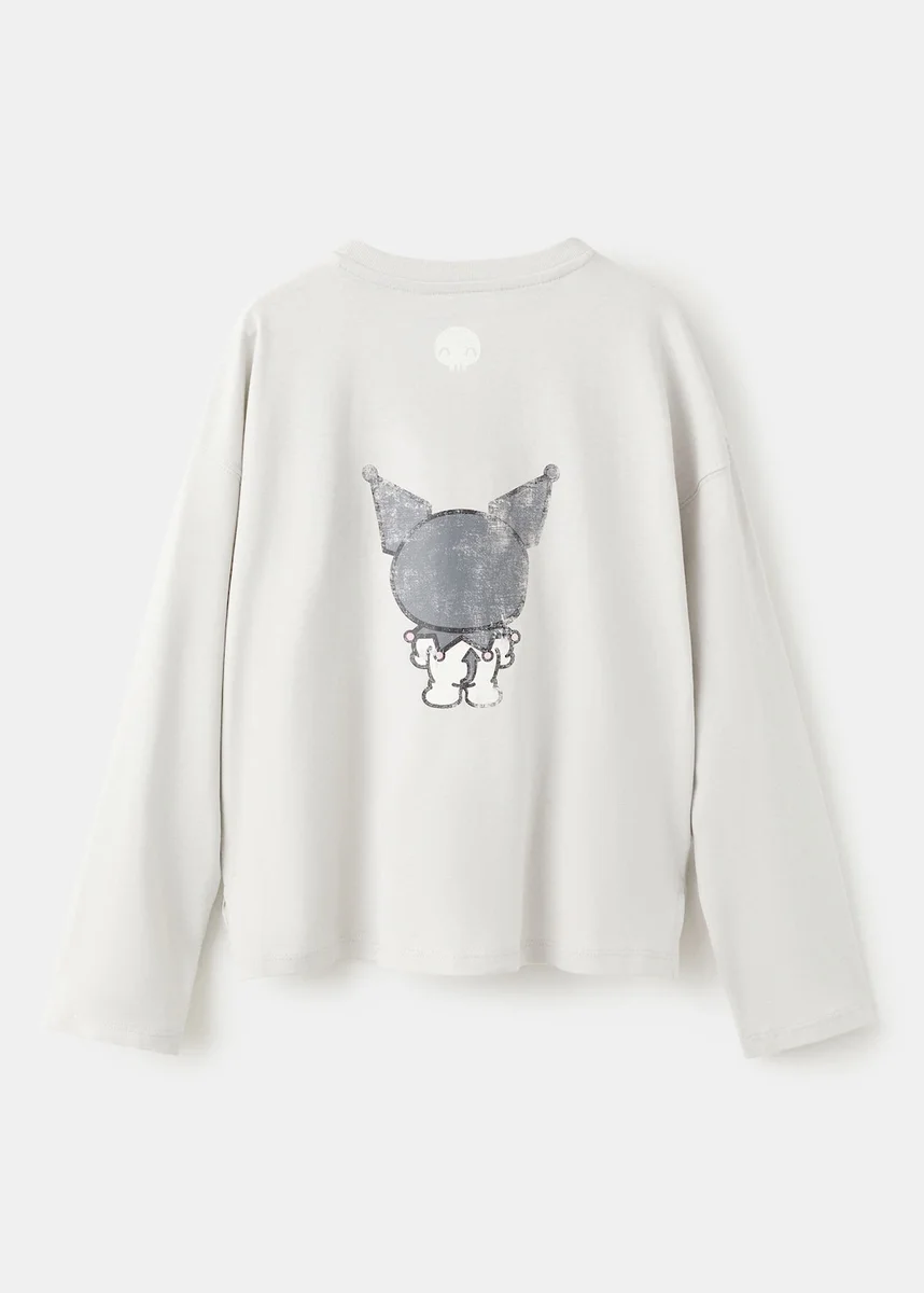 100% bavlna. Potisk. Potisk Kuromi. Kulatý výstřih. Dlouhé rukávy. Licence.
