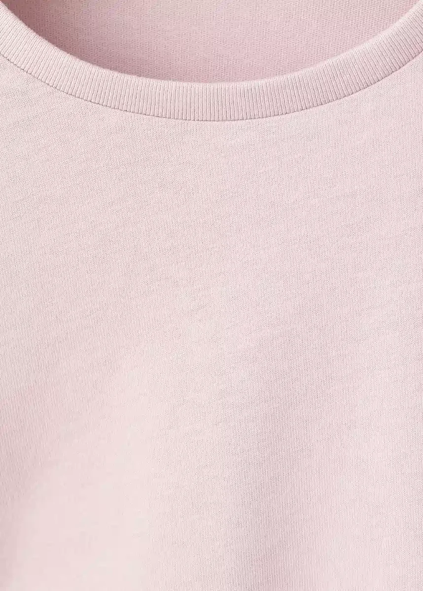 Rovný střih. 100% bavlna. Kulatý výstřih. Volánky na ramenou. Dlouhý rukáv
