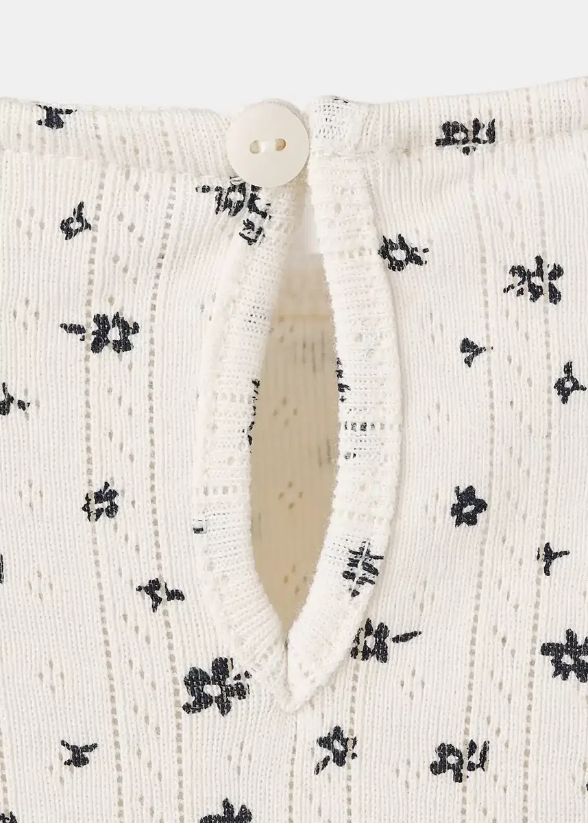 Tento oděv je vyroben ze 100% bavlny a má rovný střih s květinovým potiskem a žebrovanými detaily. Nafouklé rukávy a elastické manžety zajišťují pohodlí, zatímco zapínání na knoflíky na zadní straně zaručuje perfektní padnutí.