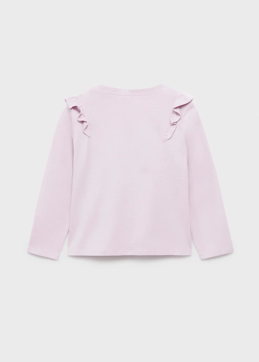 100% bavlna. Rovný střih. Kulatý výstřih. Volánky na ramenou. Dlouhé rukávy
