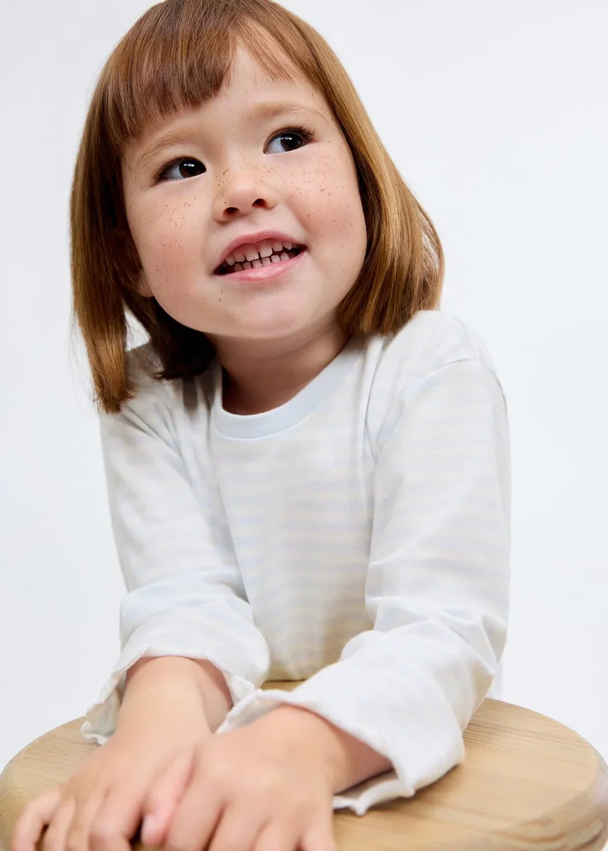 Tento oděv je vyroben ze 100% bavlny a má rovný střih s pruhy. Kontrastní kulatý výstřih mu dodává osobitý vzhled a dlouhé rukávy dotvářejí jeho styl.