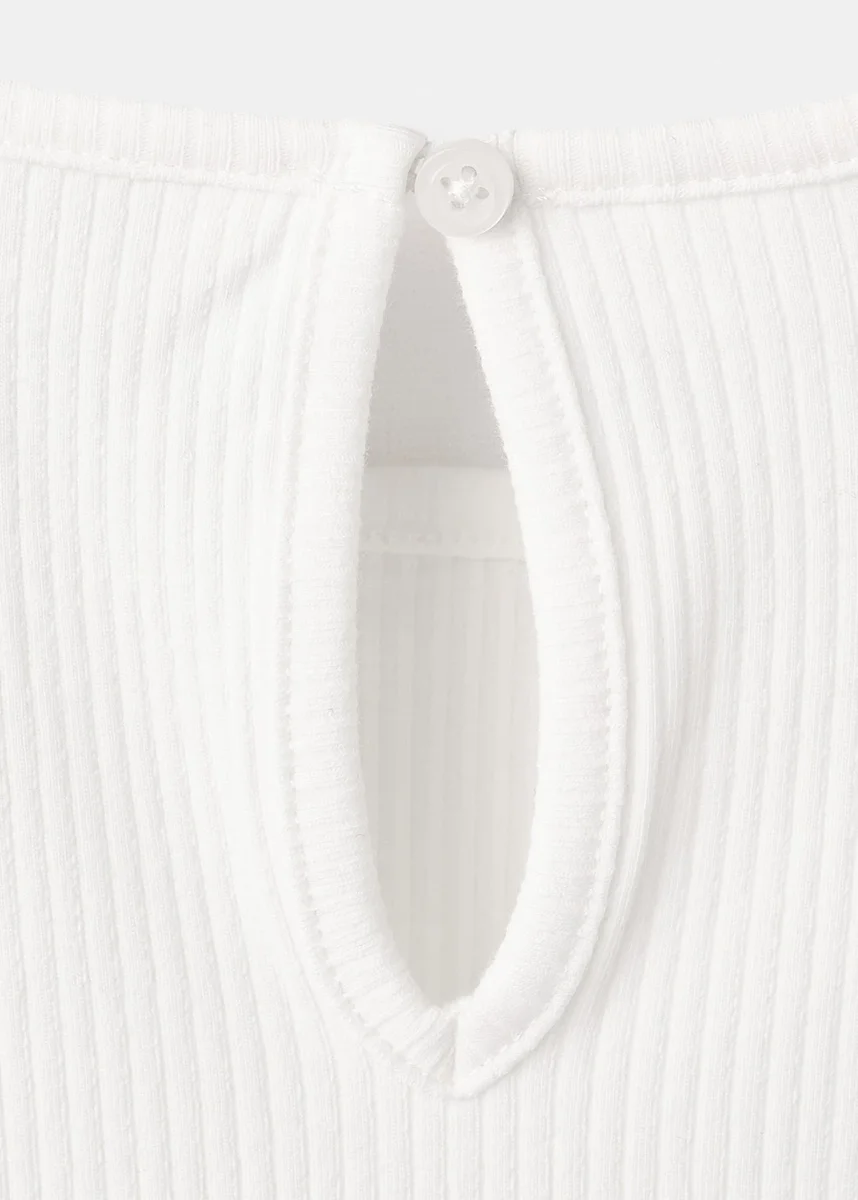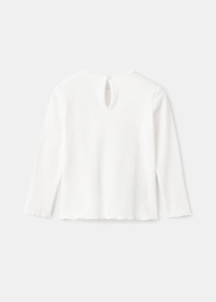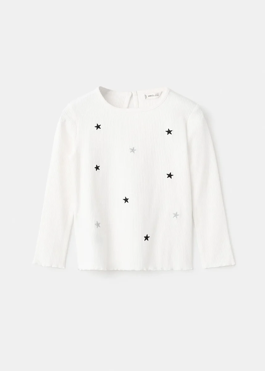 Toto tričko z žebrované bavlny má rovný střih a je zdobeno vyšívanými hvězdami. Má kulatý výstřih, dlouhé rukávy a zapínání na knoflíky na zadní straně.