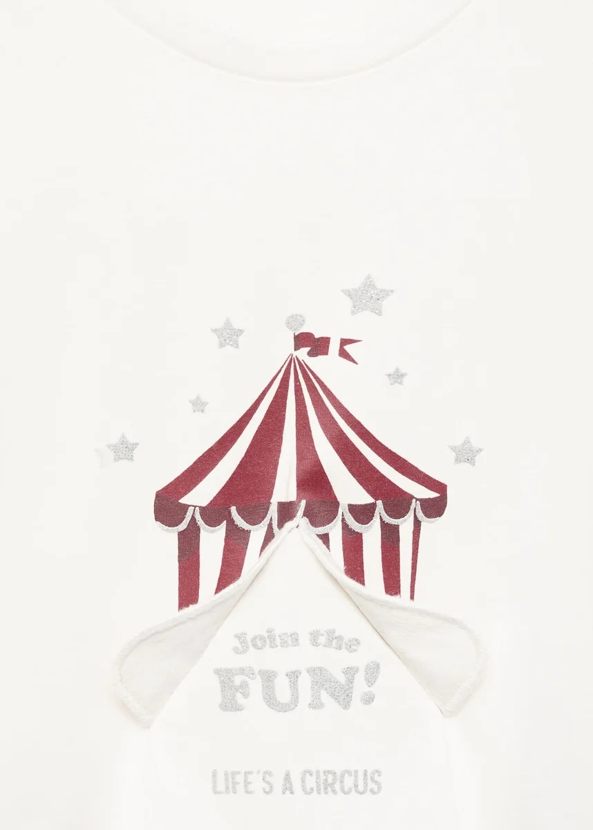 Tento oděv je vyroben ze 100% bavlny a má rovný střih s výšivkou a třpytivými ozdobami. Má kulatý výstřih, dlouhé rukávy a žebrované lemy, které mu dodávají jedinečný styl.