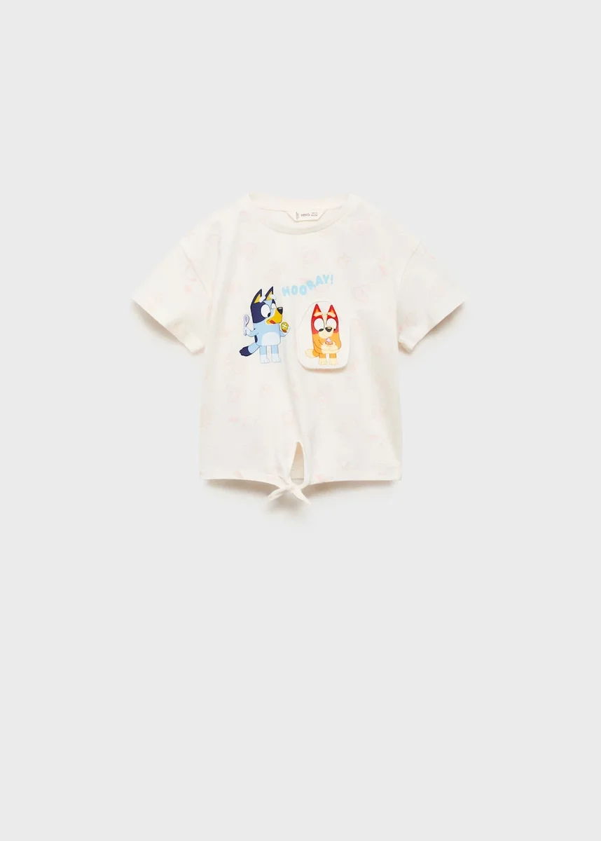 100% bavlna. Design Bluey. Rovný střih. Kulatý výstřih. Krátké rukávy. Vyšívané detaily. Potisk na hrudi. Mašle na spodním lemu. Licence
