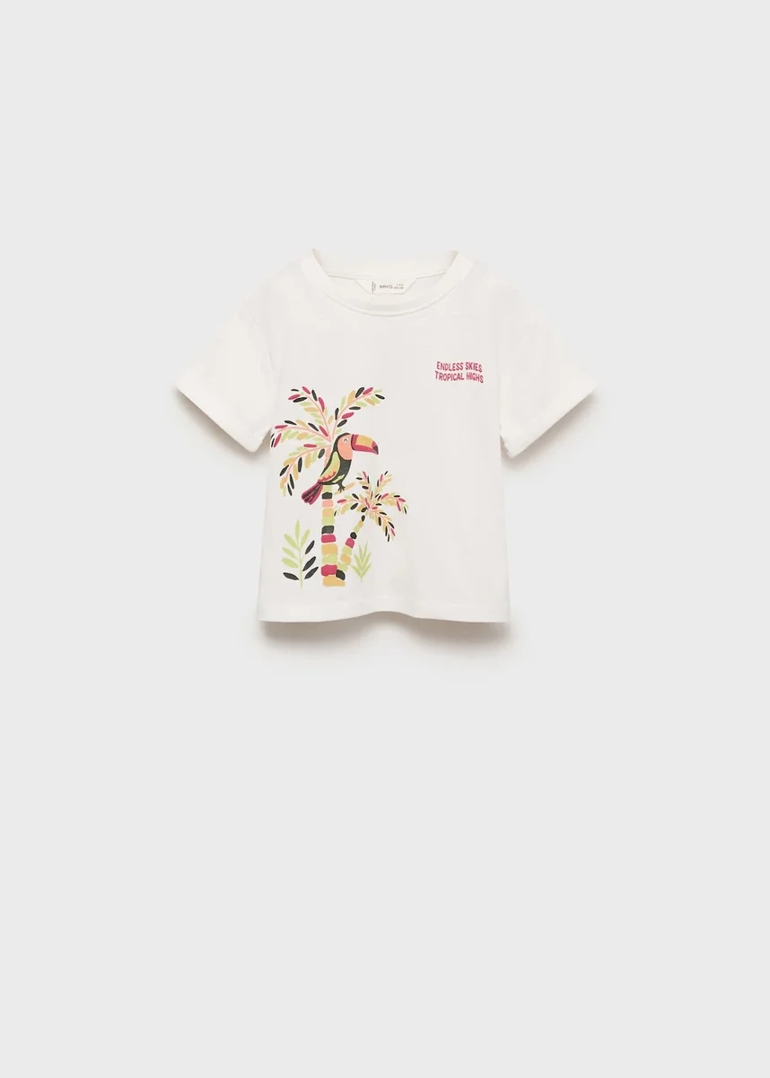 100% bavlna. Potisk. Rovný střih. Kulatý výstřih. Potisk na hrudi. Potisk tukan. Potisk slunce na zádech.
