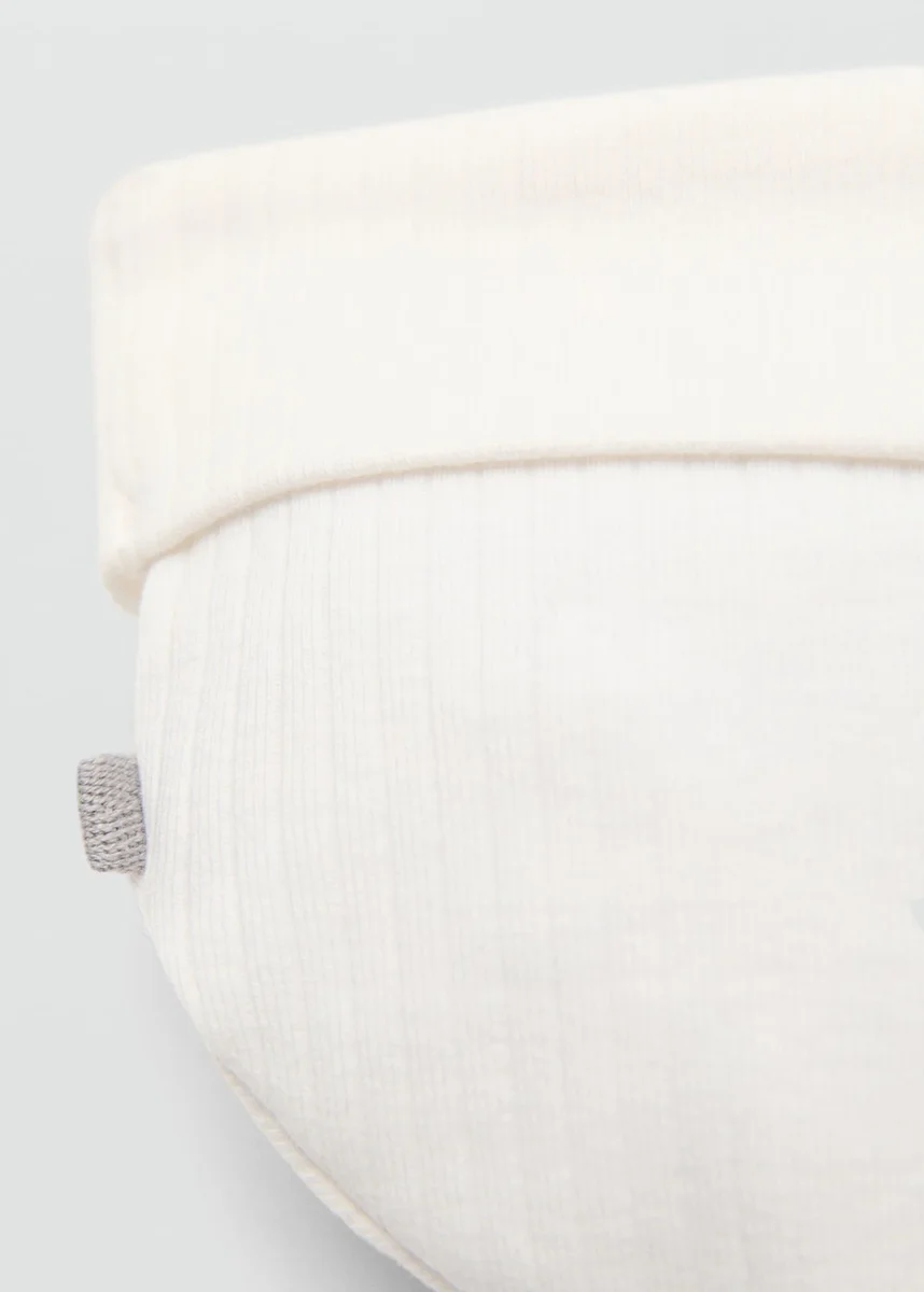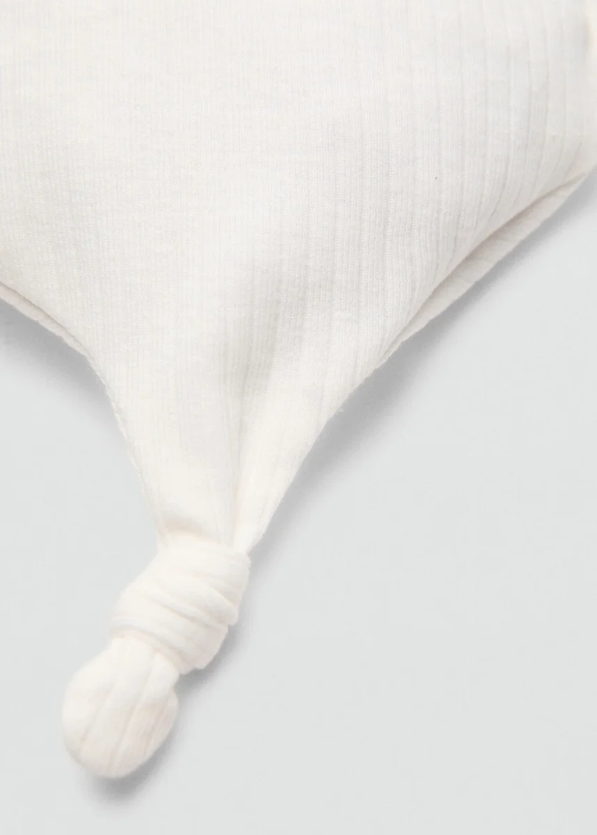Bavlněná tkanina. Jednobarevný vzor. Dvojitý překřížený vzor. Detail uzlu. Kolekce pro těhotné.