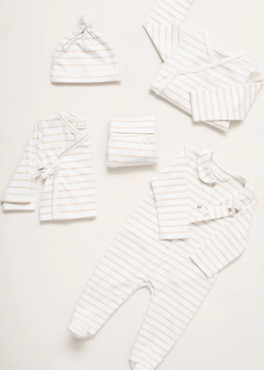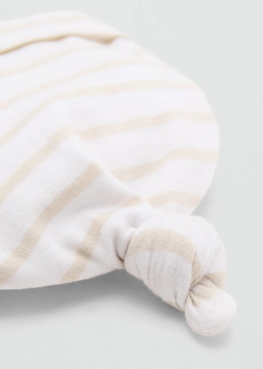 Bavlněná tkanina. Pružná tkanina. Pruhovaný design. Detail uzlu. Lem na spodní straně. Kolekce Welcome. Kolekce pro těhotné