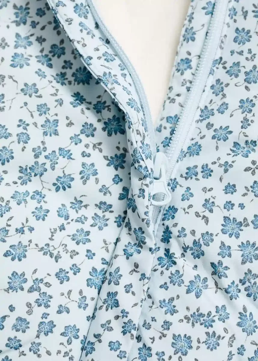 Polyesterová tkanina. Prošívaná tkanina. Střih s překřížením. Květinový vzor. Kapuce s detailem ze syntetických chlupů. Dlouhé rukávy. Dvě boční kapsy. Zapínání na zip. Vnitřní podšívka z polar fleece. Black Friday.