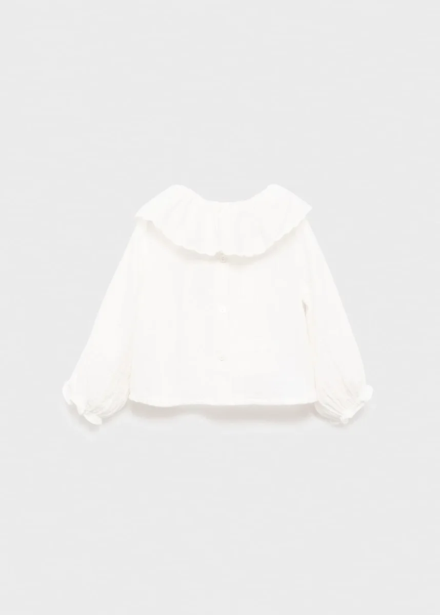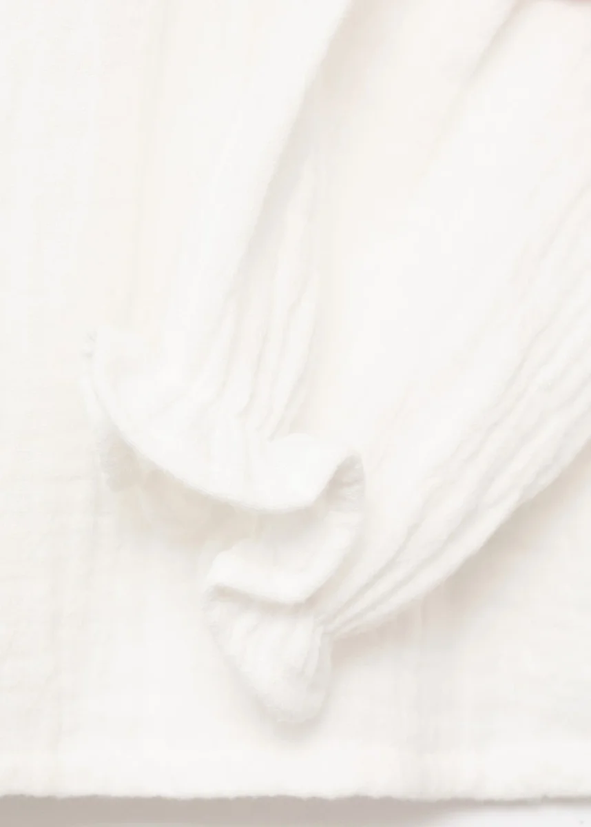 100% bavlna. Bambulová tkanina. Babydoll límec. Dlouhé rukávy s elastickými manžetami