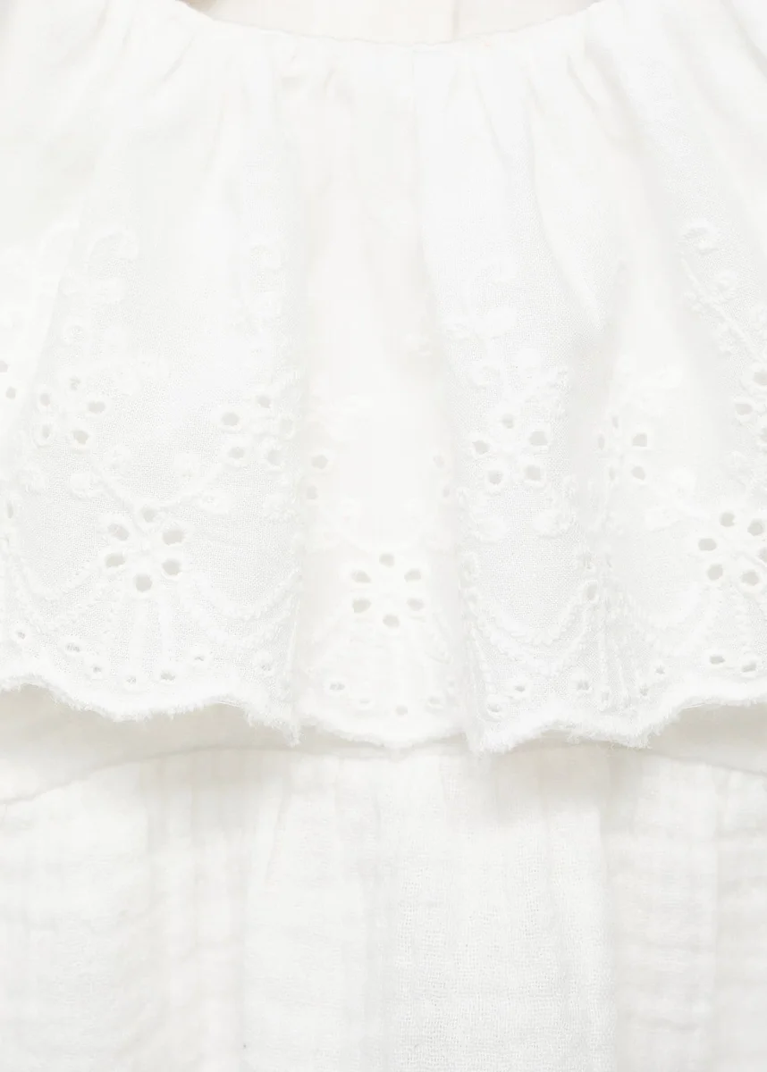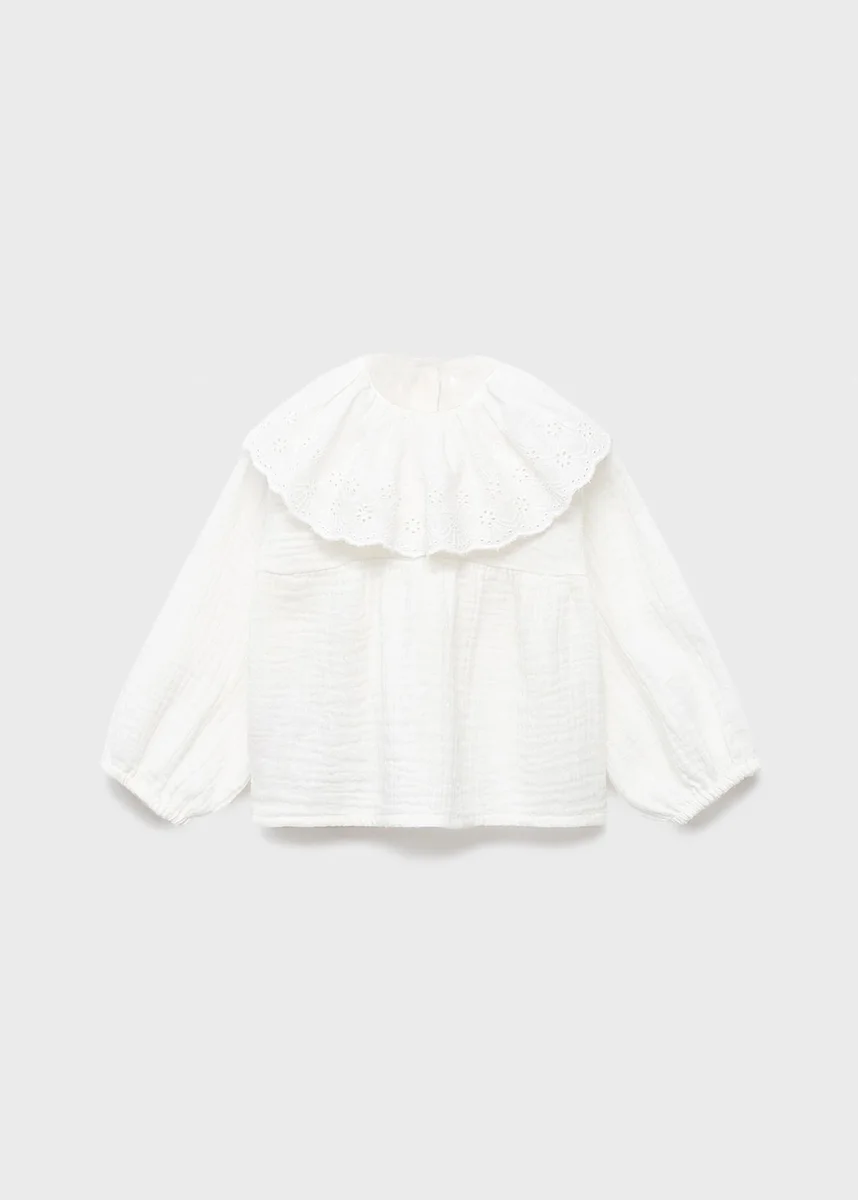 100% bavlna. Bambulová tkanina. Rovný střih. Vyšívaný vzor. Babydoll límec. Dlouhé rukávy. Nařasené detaily. Zapínání na knoflíky vpředu. Vánoční kolekce