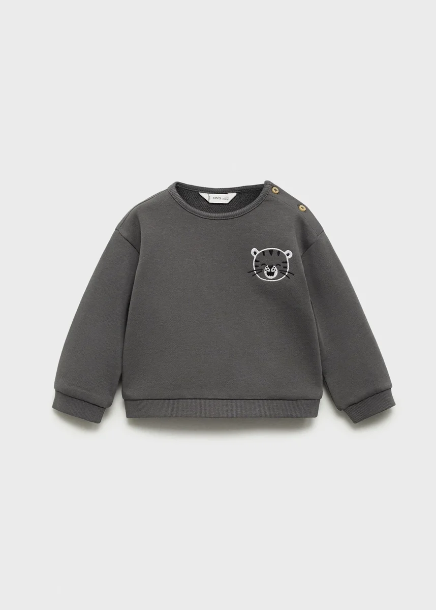 100 % bavlna. Rovný střih. Potisk tygra. Kulatý výstřih. Dlouhé rukávy. Vyšívané detaily. Žebrované lemy. Zapínání na knoflíky na rameni