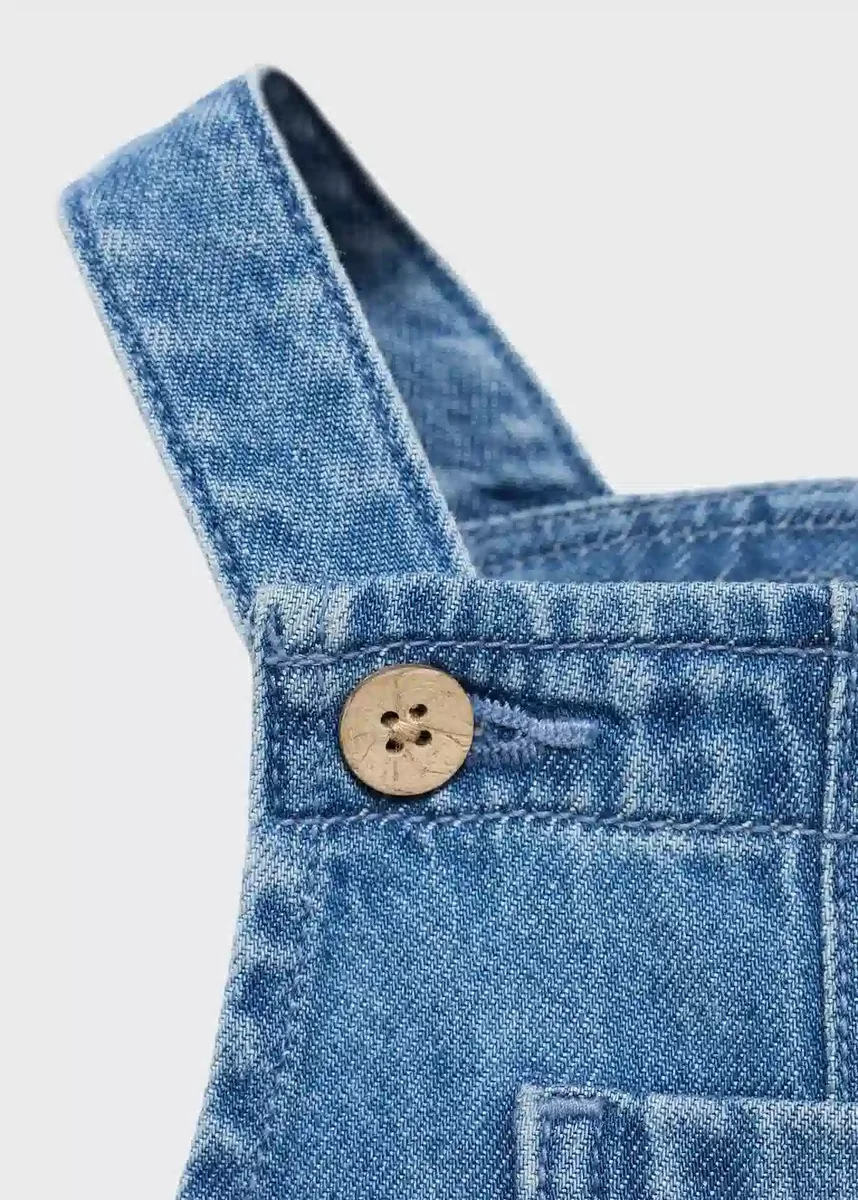 100 % bavlna v denimovém stylu. Rovný střih. Dlouhý střih. Čtvercový výstřih. Široká ramínka. Nášivková kapsa na hrudi. Nášivková kapsa na zádech. Zapínání na knoflíky