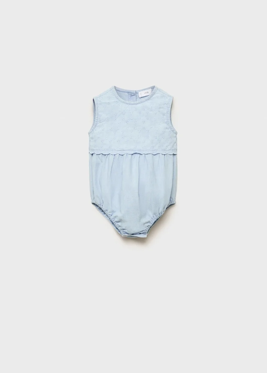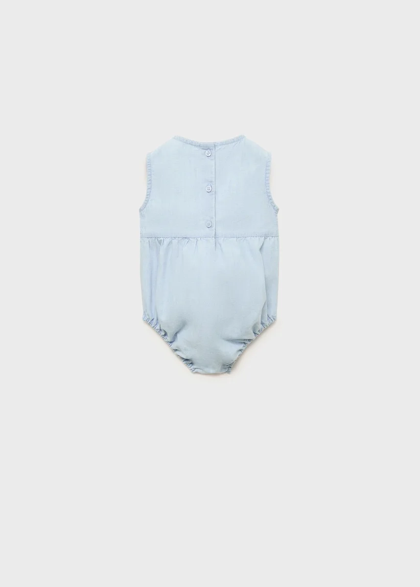 100% bavlna. Džínový design. Vyšívaný design. Kulatý výstřih. Bez rukávů. Nařasené detaily v pase. Zapínání na knoflíky vzadu. Spodní otvor se zapínáním na knoflíky. S vnitřní podšívkou. Sada. Černý pátek