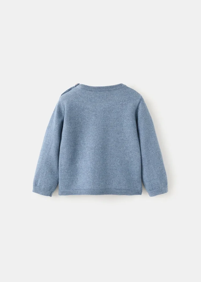 Pletená látka. Bavlněná látka. Rovný střih. Zaoblený výstřih se zapínáním na knoflíky. Dlouhé rukávy. Nášivková kapsa na přední straně. Žebrované lemy.