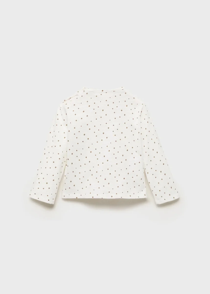 Toto tričko je vyrobeno ze 100% bavlny a má rovný střih s potiskem koťátka. Má kulatý výstřih se zapínáním na knoflíky, dlouhé rukávy, vyšívané detaily a kapsu na hrudi.