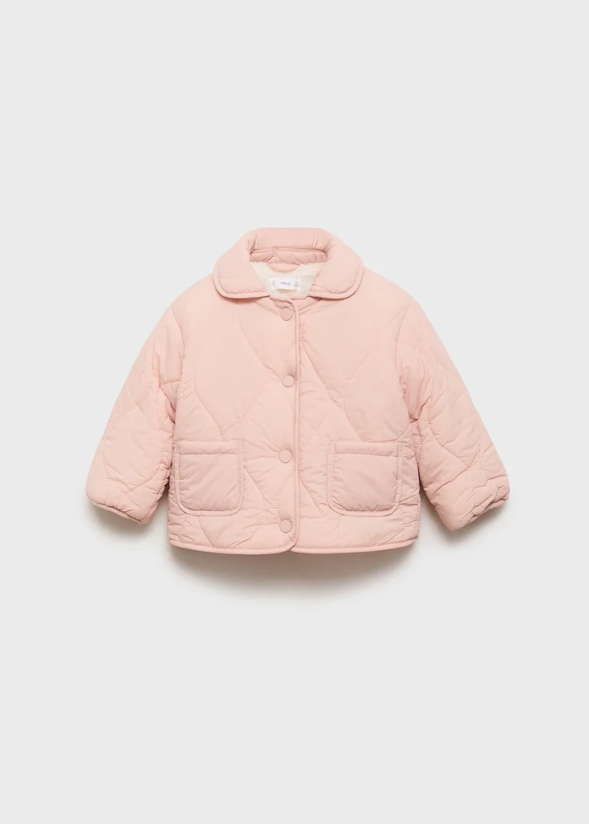 Prošívaná látka. Umělá ovčí kůže. Rovný střih. Límec Babydoll/Peter Pan. Dlouhé rukávy. Zapínání na knoflíky. Dvě přední kapsy. Vnitřek z umělé ovčí kůže