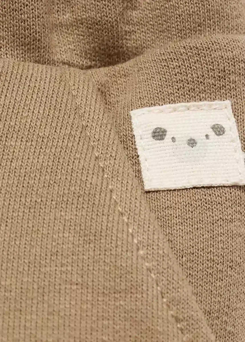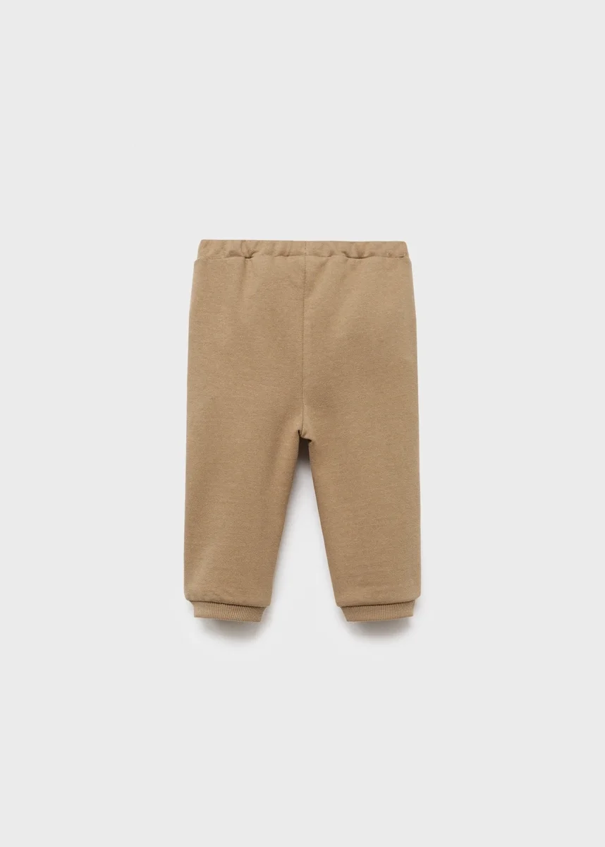 Bavlněná tkanina. Dlouhý střih. Jednobarevný střih. Elastický pas se stahovací šňůrkou. Dvě boční kapsy. Vyšívaná nášivka.