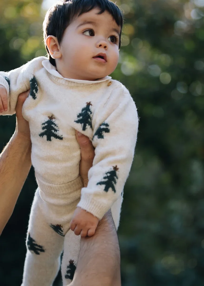 Pletená látka. Přiléhavý střih. Dlouhý střih. Potisk. Ozdobné knoflíky. Vánoční kolekce