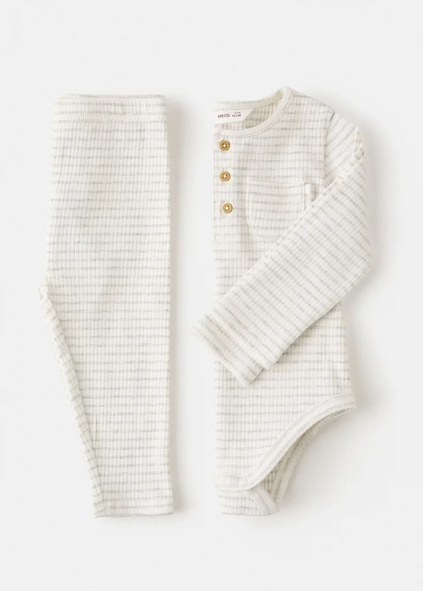 Bavlněná tkanina. Pruhovaný vzor. Dlouhý střih. Legíny. Elastický pas.