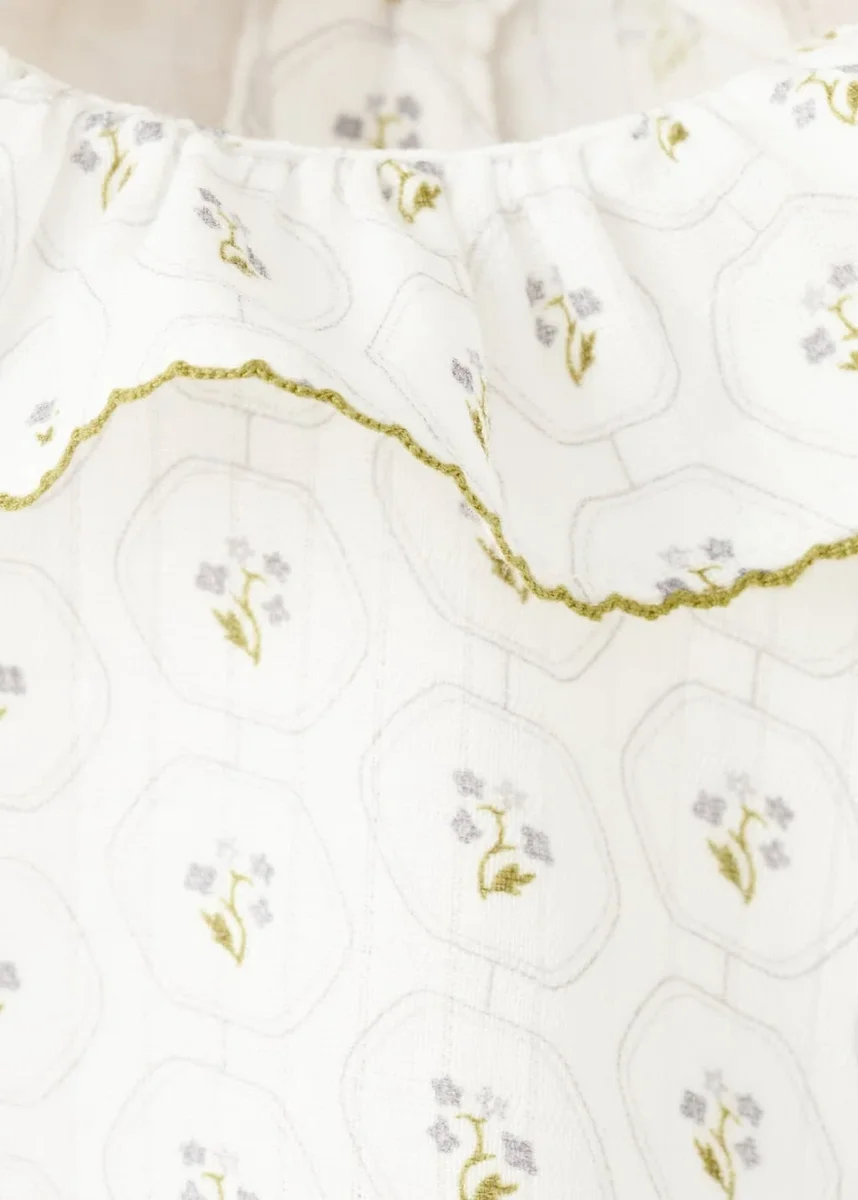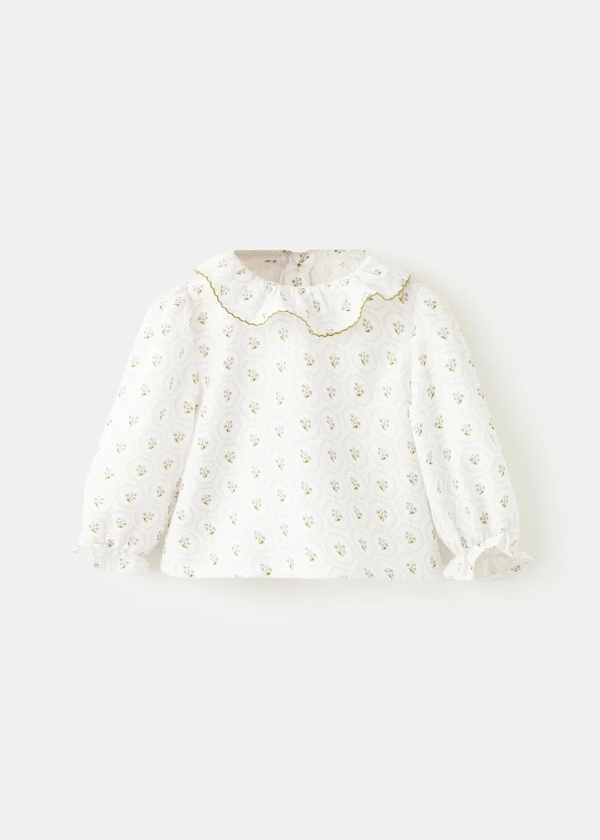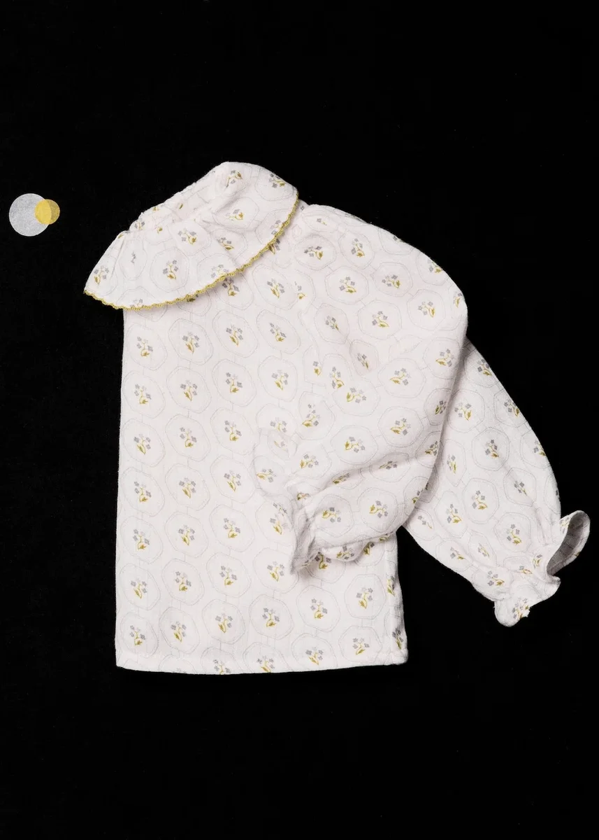 100% bavlna. Potisk. Květinový potisk. Límec Peter Pan. Kulatý výstřih. Dlouhé rukávy s žebrovanými lemy. Zapínání na knoflíky. Vánoční kolekce.