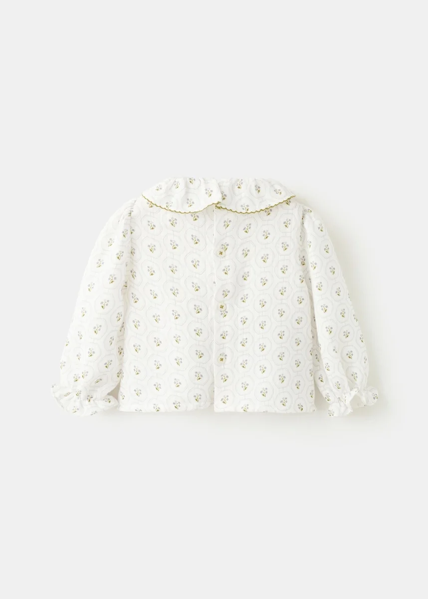 100% bavlna. Potisk. Květinový potisk. Límec Peter Pan. Kulatý výstřih. Dlouhé rukávy s žebrovanými lemy. Zapínání na knoflíky. Vánoční kolekce