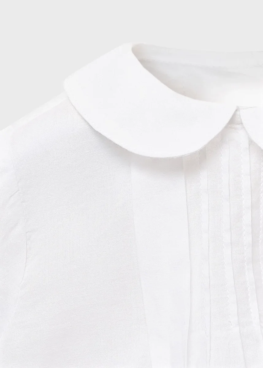 Kolekce Welcome. Těhotenská kolekce. 100% bavlna. Rovný střih. Nařasené detaily. Límec Peter Pan. Dlouhé rukávy. Zapínání na knoflíky vzadu. Black Friday.
