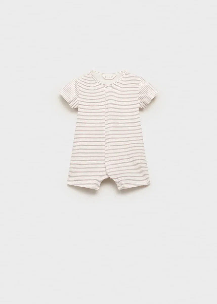 Bavlněná tkanina. Rovný střih. Krátký střih. Pruhovaný vzor. Kulatý výstřih. Krátký rukáv. Zapínání na knoflíky vpředu
