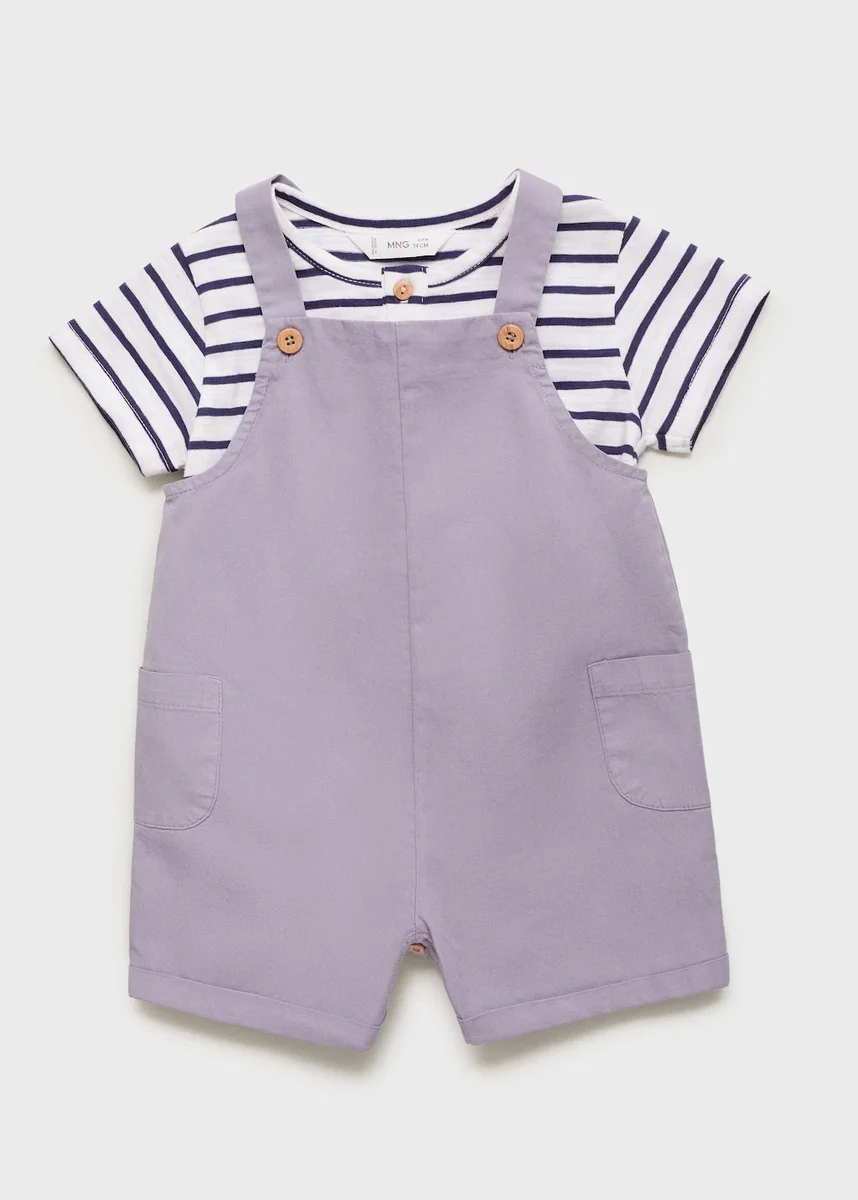 100% bavlna. Denimový styl. Rovný střih. Krátký střih. Rovný výstřih. Ramínka se zapínáním na knoflíky. Boční kapsy. Spodní otvor se zapínáním na knoflíky. Sada. Černý pátek