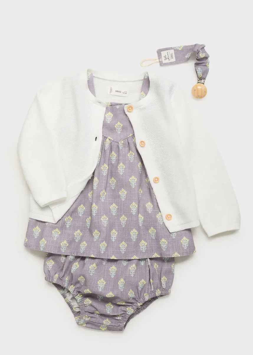 100% bavlna. Pletená látka. Jednoduchý design. Kulatý výstřih. Žebrovaný výstřih, manžety a lem. Dlouhé rukávy. Zapínání na knoflíky vpředu. Sada