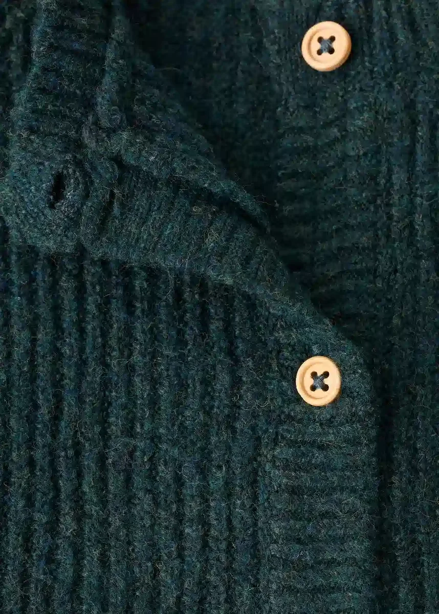 Pletená látka. Rovný střih. Kulatý výstřih. Dlouhé rukávy. Zapínání na knoflíky vpředu. Vánoční kolekce.