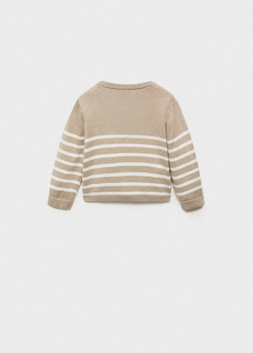Pletená látka. Bavlněná látka. Pruhovaný vzor. Rovný střih. Kulatý výstřih se zapínáním na knoflíky. Dlouhé rukávy. Žebrovaný výstřih, manžety a lem. Black Friday.