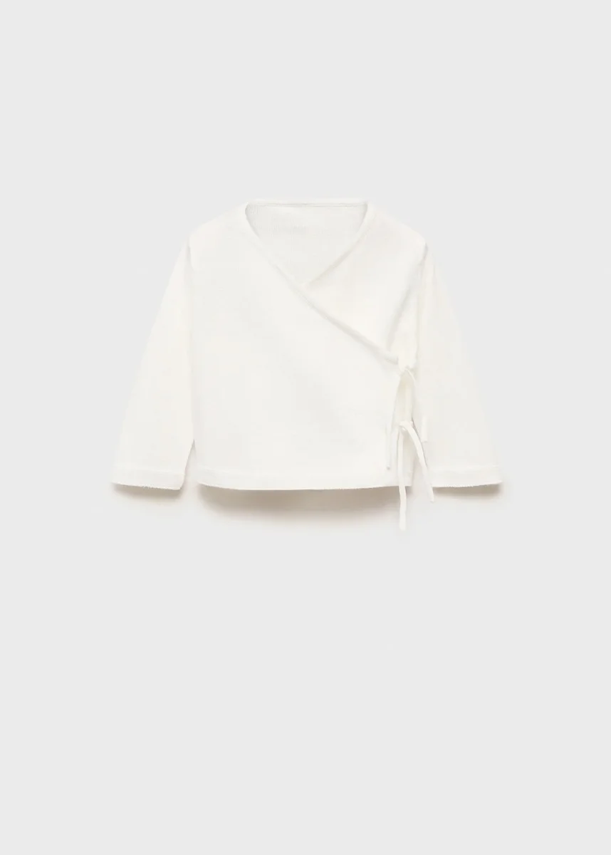 100 % bavlna. Rovný střih. Výstřih do V. Dlouhé rukávy. Křížové zapínání. Boční zavazování. Sada. Kolekce pro těhotné.