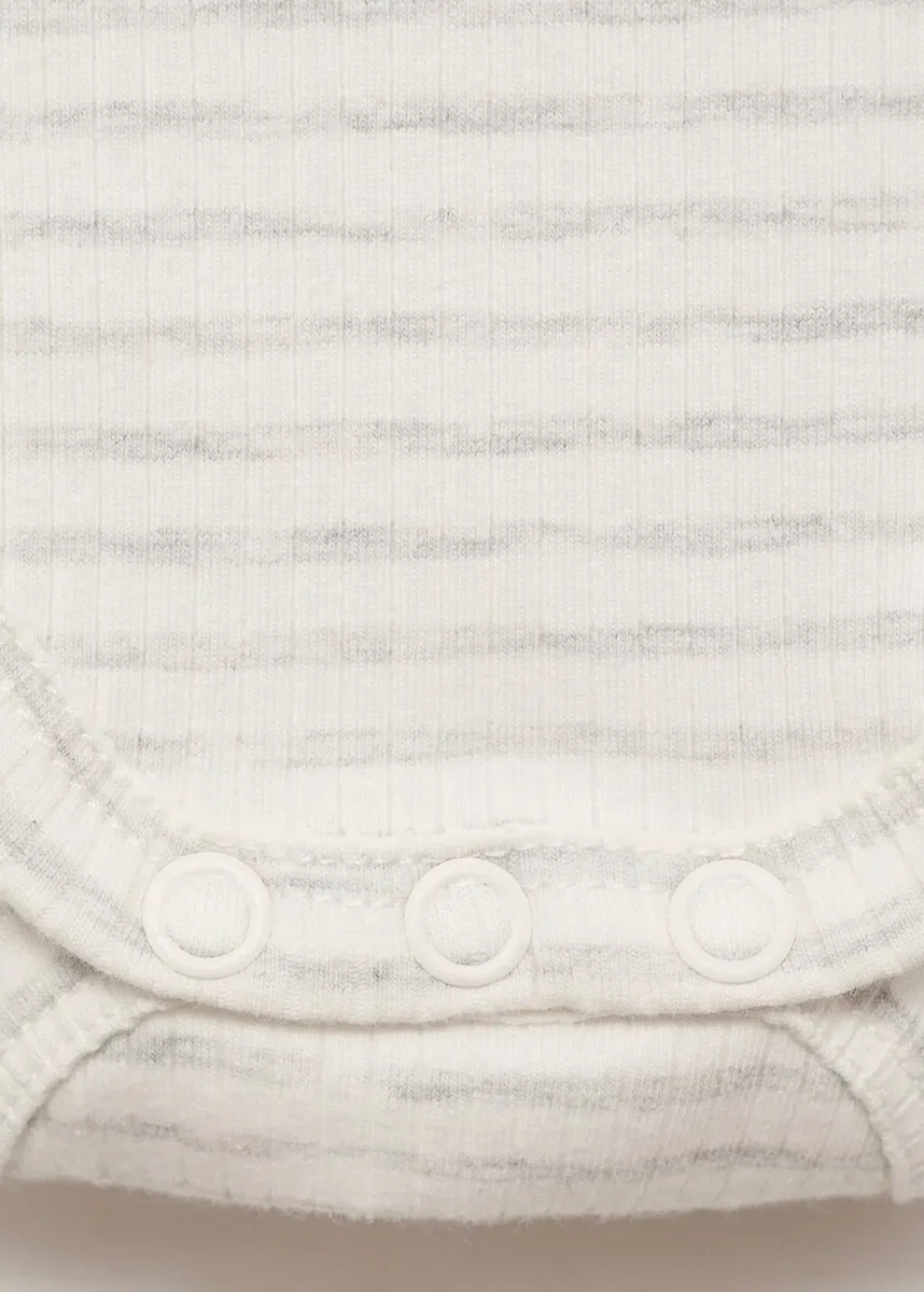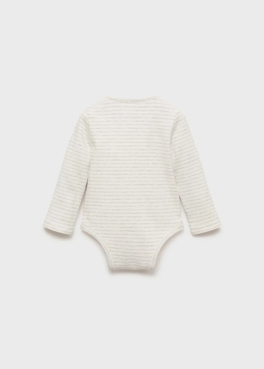 Tento body z pruhované bavlněné tkaniny má kulatý výstřih s knoflíkovým zapínáním. Má dlouhé rukávy, přední našitou kapsu a knoflíkové zapínání na spodním lemu.