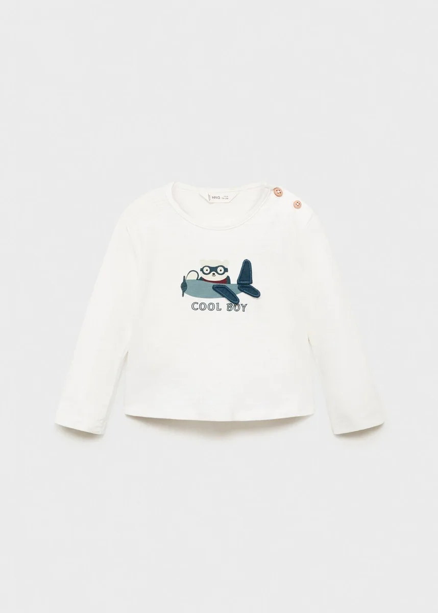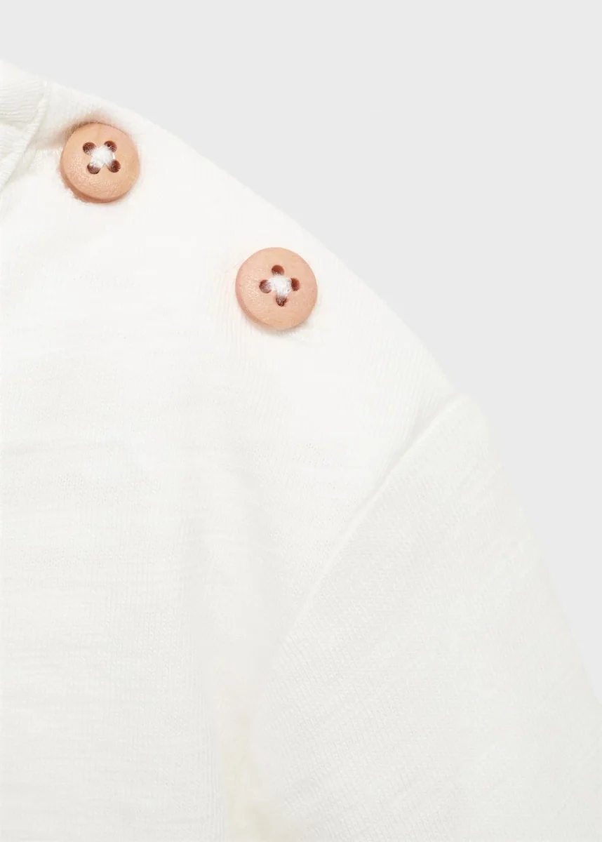 Tento oděv je vyroben ze 100% bavlny a má rovný střih s kulatým výstřihem a dlouhými rukávy. Potisk je doplněn vyšívanými detaily a zapínáním na knoflíky u krku.