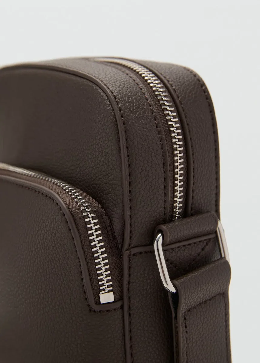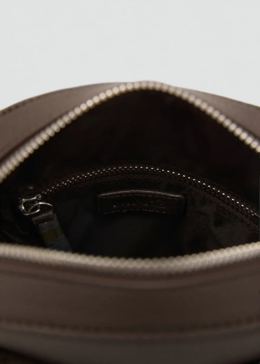 Efekt zrnité kůže. Dlouhý nastavitelný popruh. Hlavní přihrádka se zapínáním na zip. Boční kapsa se zapínáním na zip. Vnitřní kapsy.